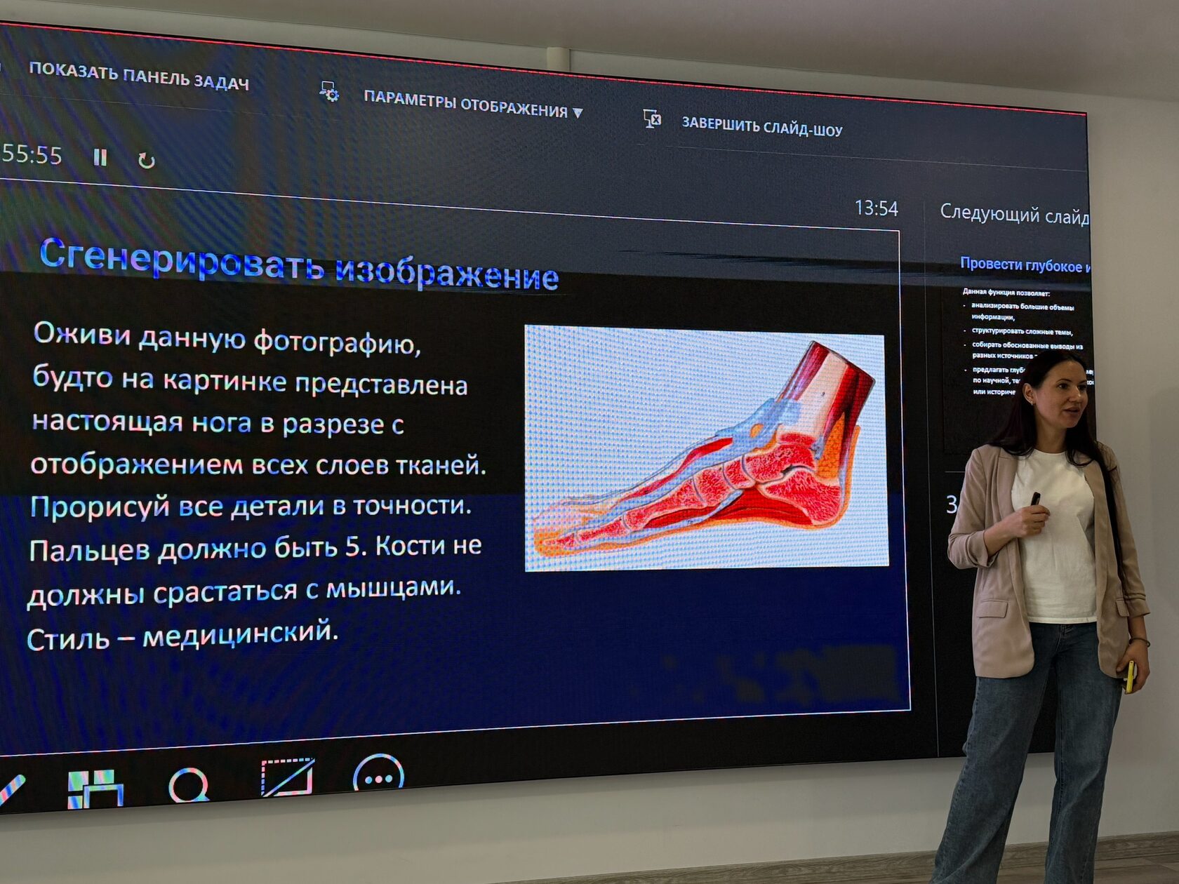 Председатель Комиссии по бьюти-индустрии Рязанской «ОПОРЫ РОССИИ», Людмила Неклюдова, рассказала и показала, как она использует нейросети в проф деятельности подолога, упрощая свою ежедневную практику, улучшая качество обслуживания клиентов и привлекая новых. Например, мастера создавали изображения себя в виде кукол.